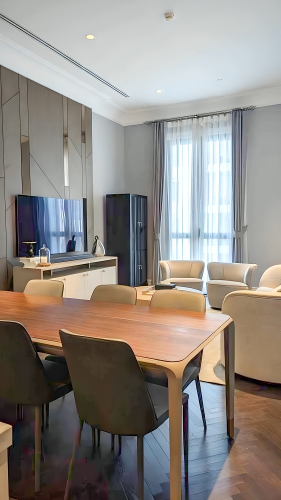 The interiors reflect a classic luxury aesthetic, with high-quality materials, refined detailing, and a timeless design language that sets 98 Wireless apart. The scale of the residence, combined with its thoughtful layout, provides a sense of space and exclusivity rarely found in central Bangkok condominiums.