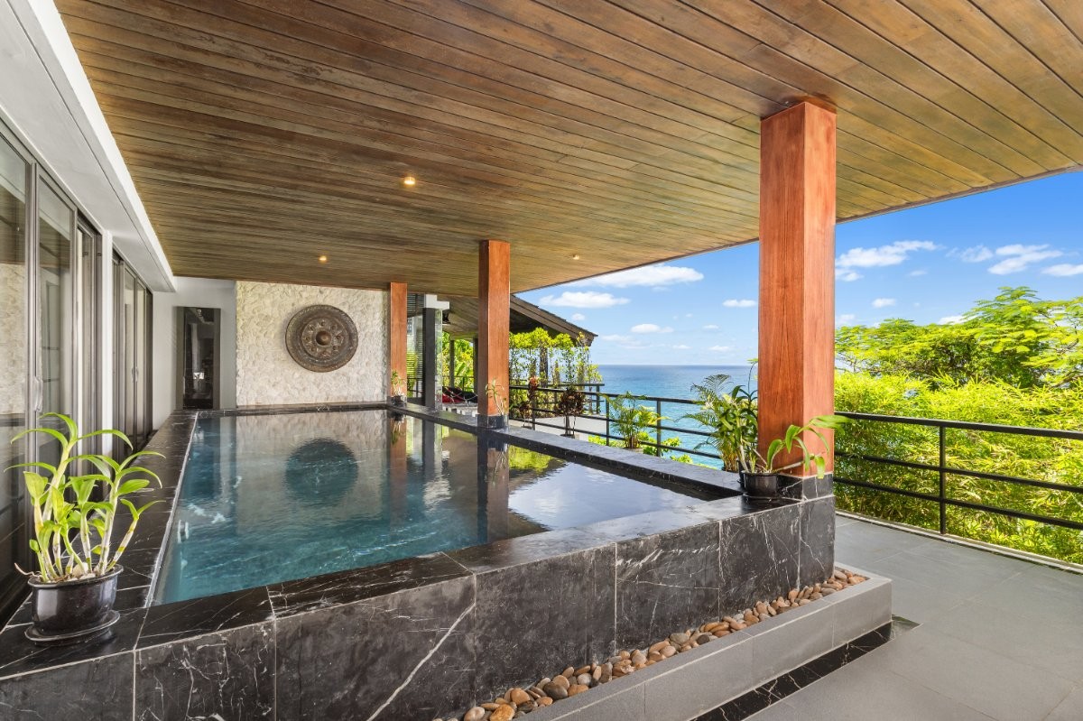 Villa Yin serves as the primary residence of the estate, featuring 5 bedrooms and 6 bathrooms across 750 sq.m. of interior and exterior living space. Its dramatic open-plan layout connects seamlessly with sweeping sea-view terraces and an infinity-edge marble pool that appears to merge with the horizon.