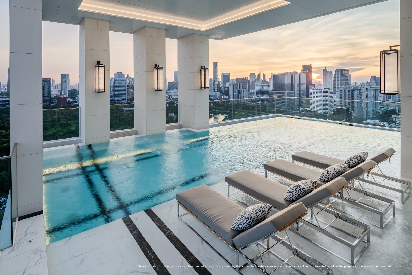 Residents enjoy access to a curated collection of luxury amenities designed to enhance daily life, including a 2 story sky amphitheater, a Private Chef Dining Room, and the Decanter Sky Lounge—all set against the backdrop of the Bangkok skyline. The project’s architectural inspiration and interior design reflect a refined metropolitan lifestyle, where every detail is executed to the highest standard.