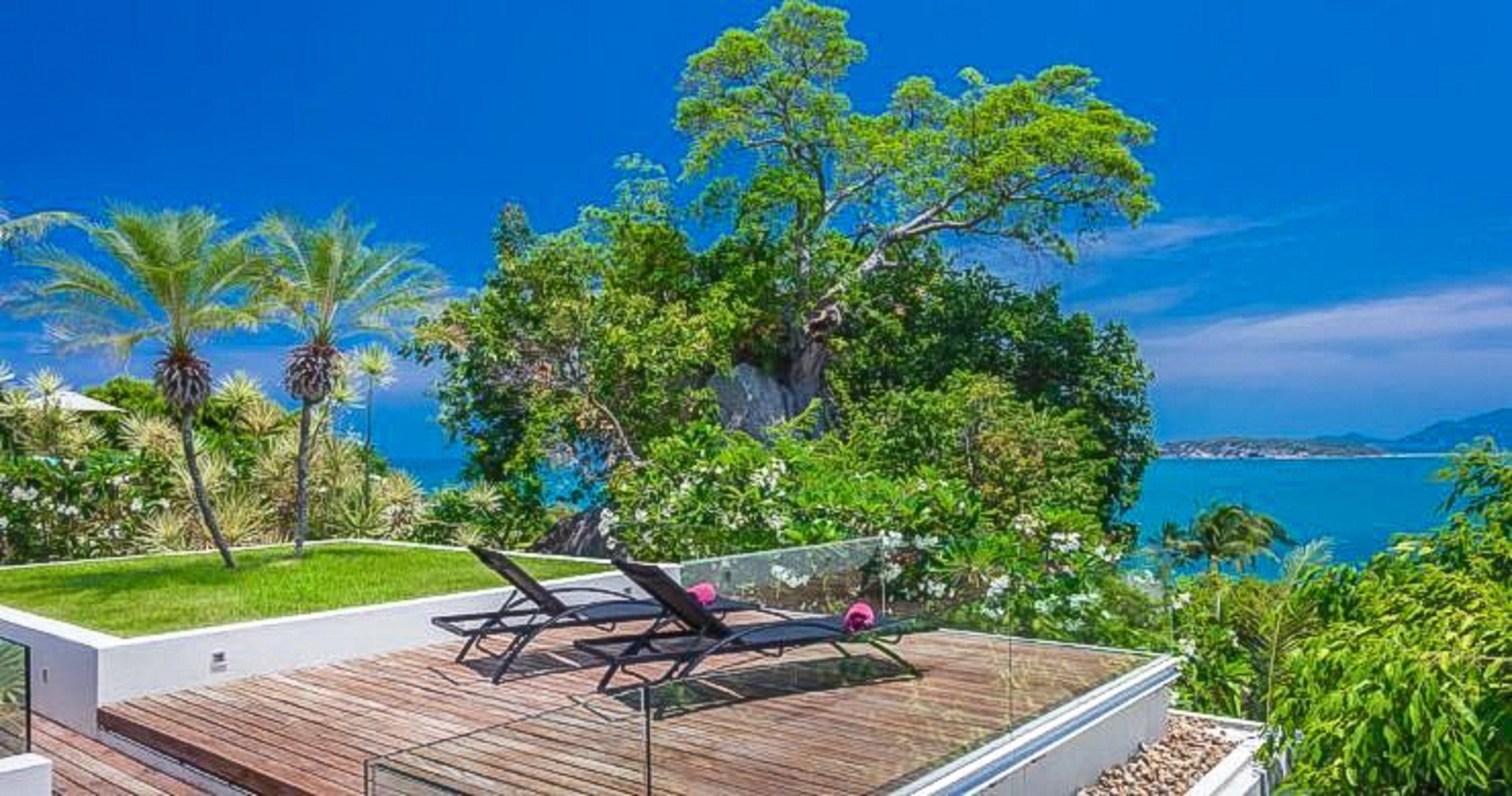 An exclusive 5-Bedroom luxury villa for sale perched on the Choeng Mon hillside, with panoramic unhindered ocean-views.