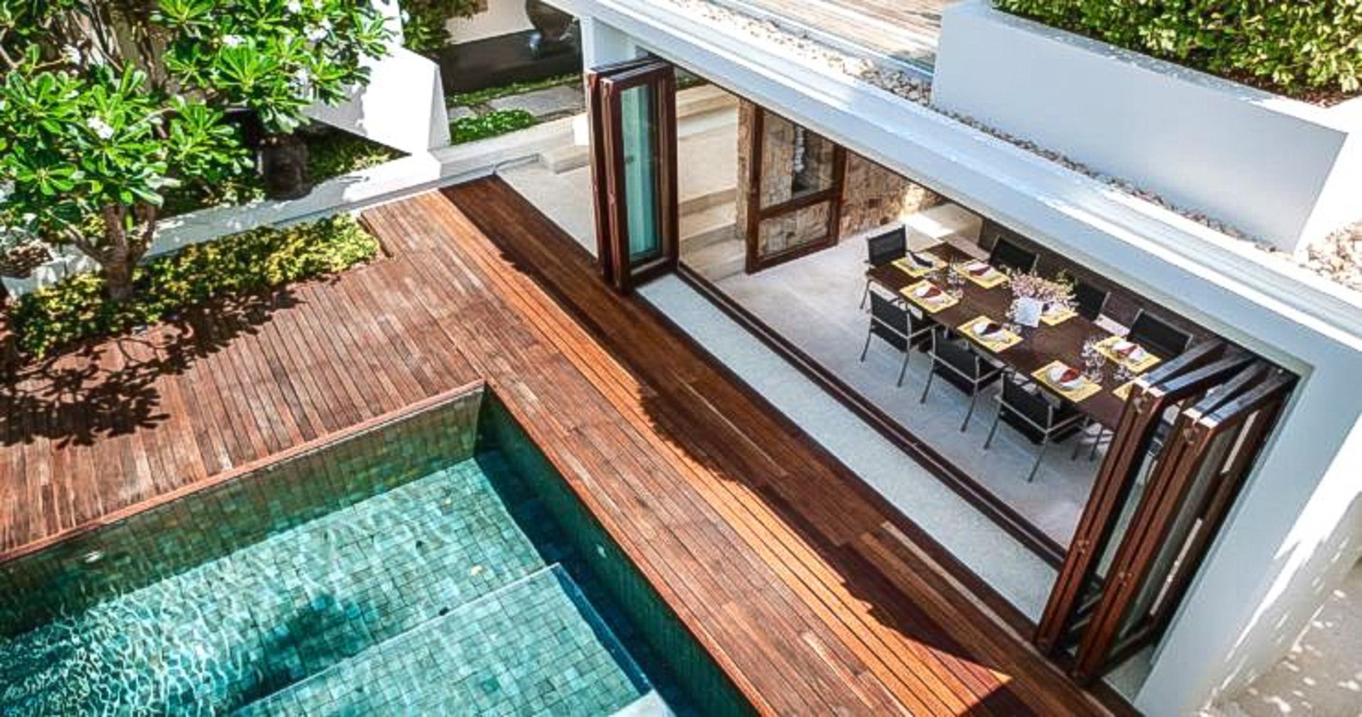 The villa itself is constructed with an open-air design to maximize light and space, allowing fresh breezes to blow through the villa, and creating an open and relaxed living space.