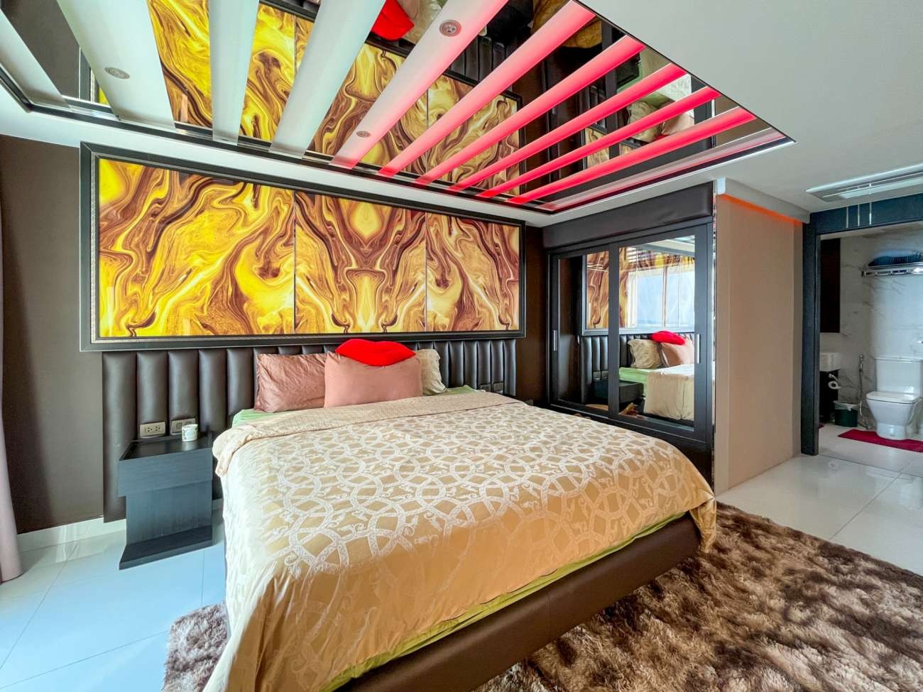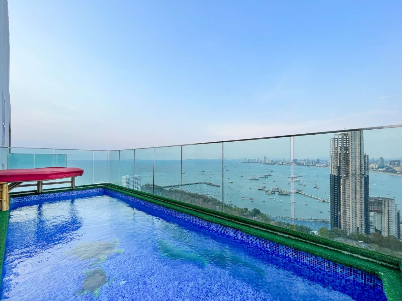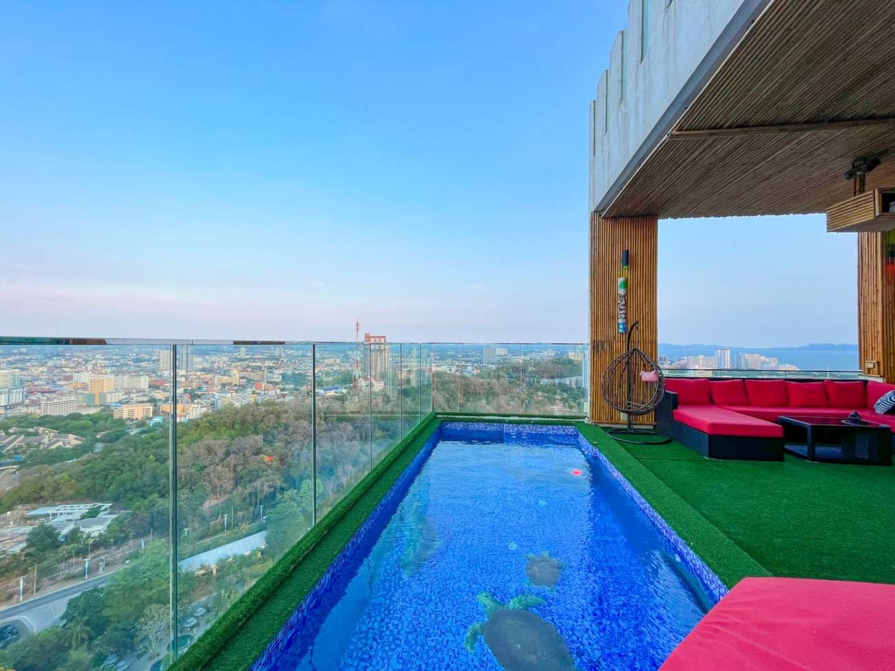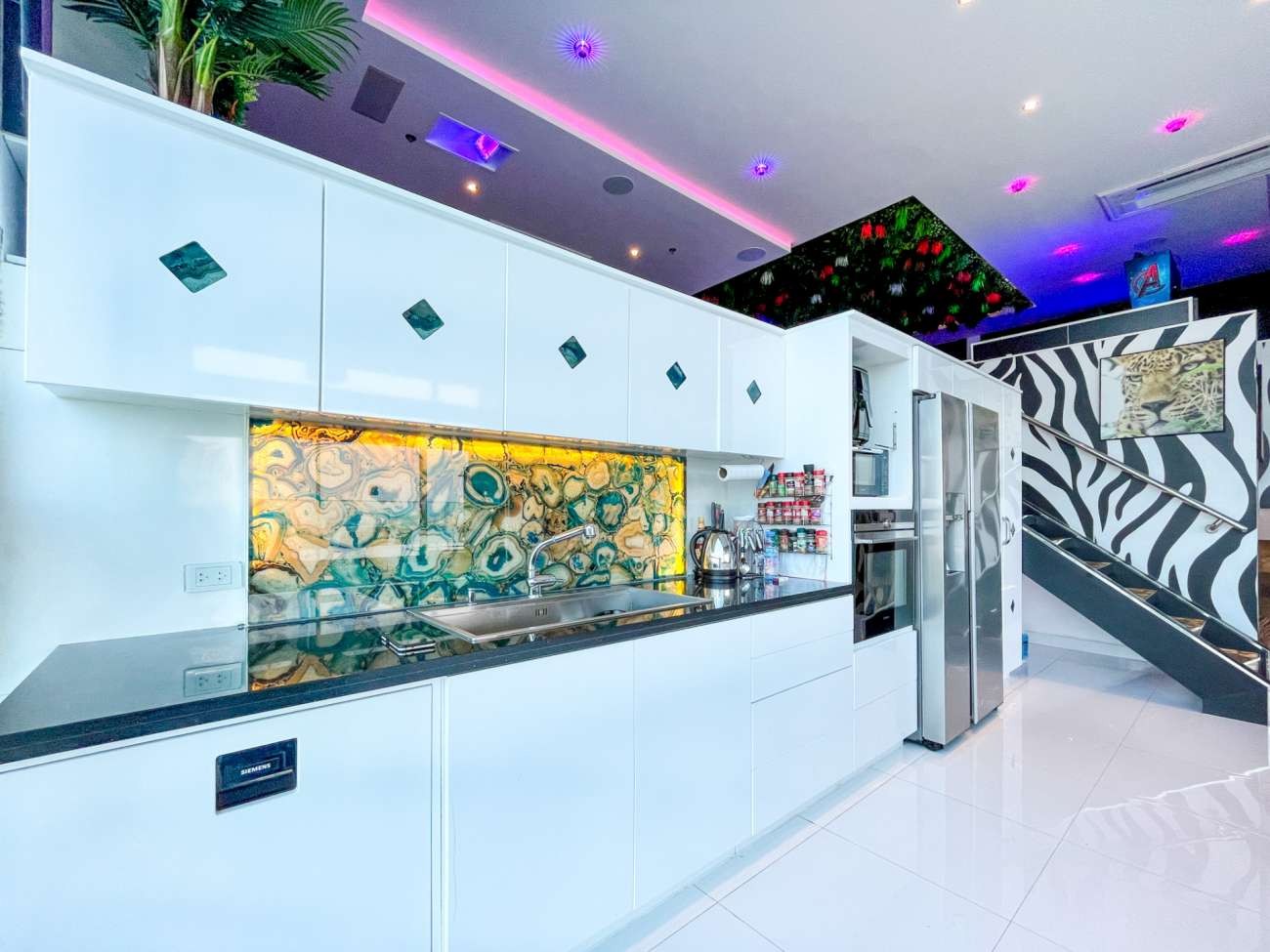 Situated on the top of Sky Residences  (formerly known as Amari Residences Pattaya) the Penthouse is in the Pratumnak Hill area of Pattaya overlooking Pattaya Bay. The 35-floor development is located  within walking distance of The Peach Exhibition Center and some of the area’s best hotels including The Royal Cliff and The Sheraton. Building amenities include a 25 meter communal swimming pool with sunbathing area and gardens, a huge five star lobby, a VIP/Business lounge area, library room, a fitness center with steam room and sauna, 4 high speed elevators, and 24 hour security.