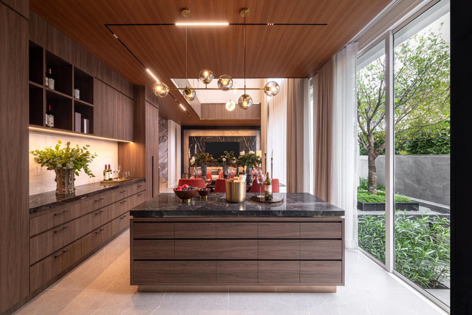 Type Seraphinite provides larger spaces with a land area starting at 61 sq. wah and a usable space of 369 sq.m. It includes 4 bedrooms, 5 bathrooms, and parking for 3 cars. The starting price for this house-type is 41.38 million Baht, with homes oriented to the north or south.