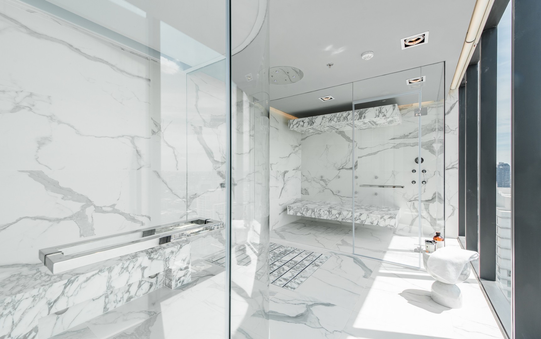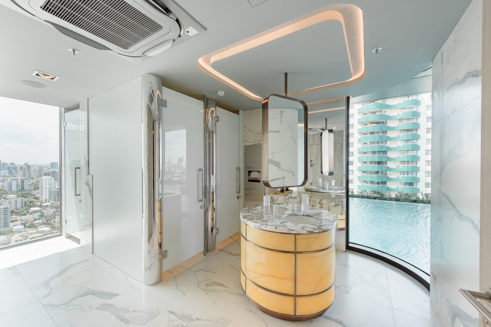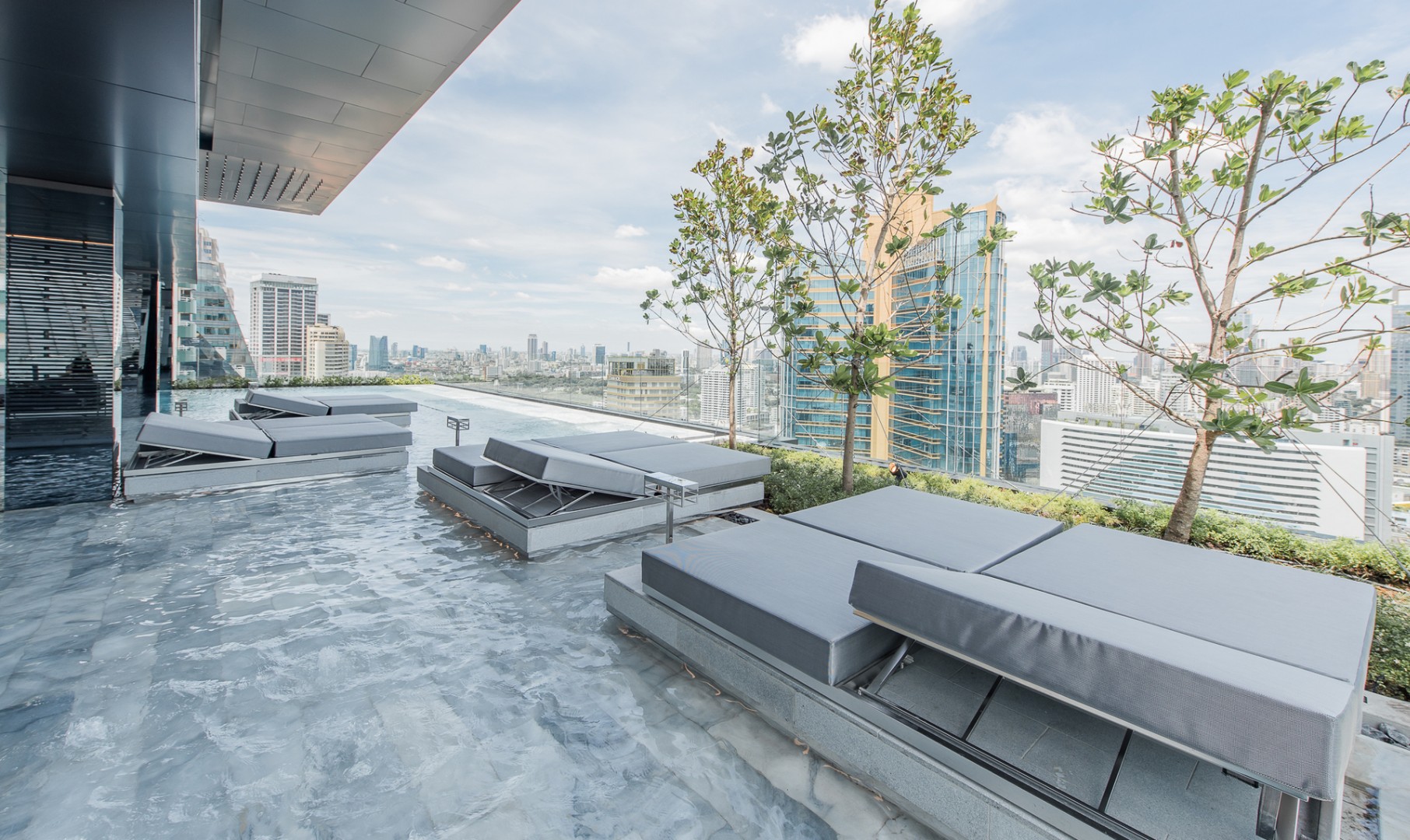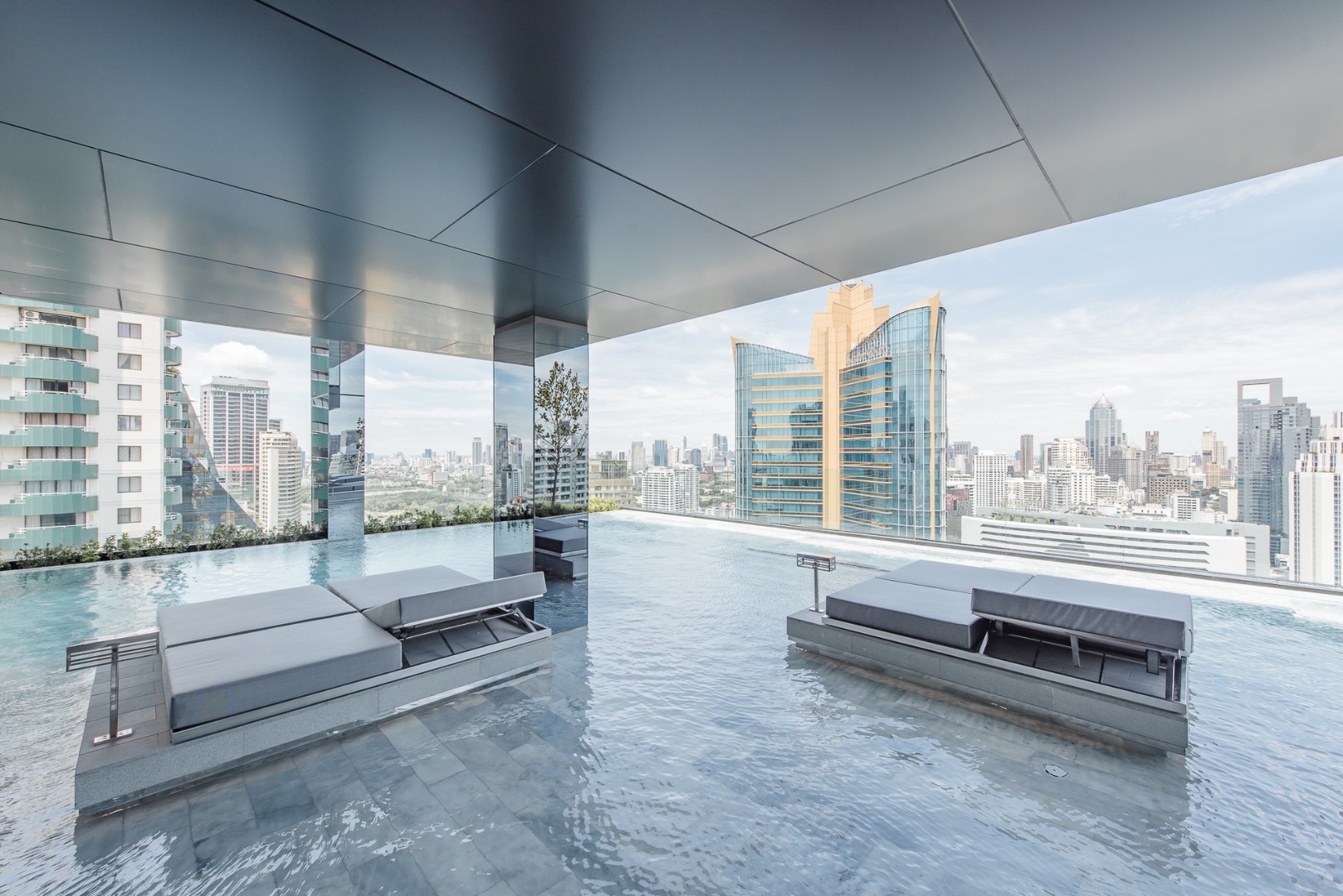 Most facilities are to be found on the 33rd floor, benefitting from magnificent uninterrupted city views in all directions, and include; a 180-degree panoramic lap pool, a reflective shallow pool, a sky edge social jacuzzi, jacuzzi twin beds, a personal jacuzzi, hydro jet seats, floating sky loungers, pool pavilions, separate male and female wet spas with steam rooms, experiential showers with water jet massagers and a personalized service room.