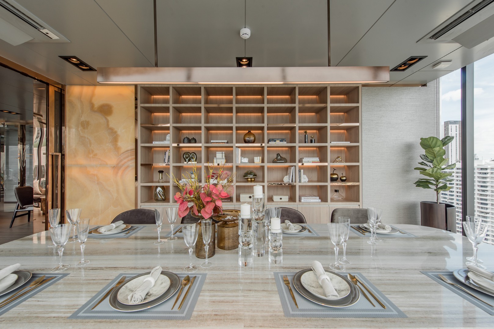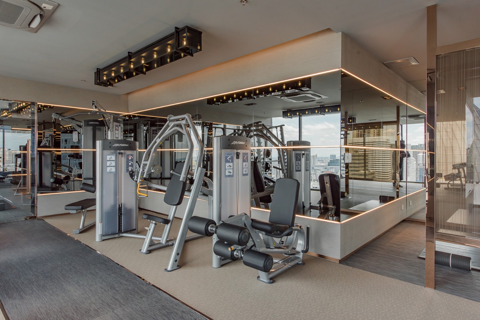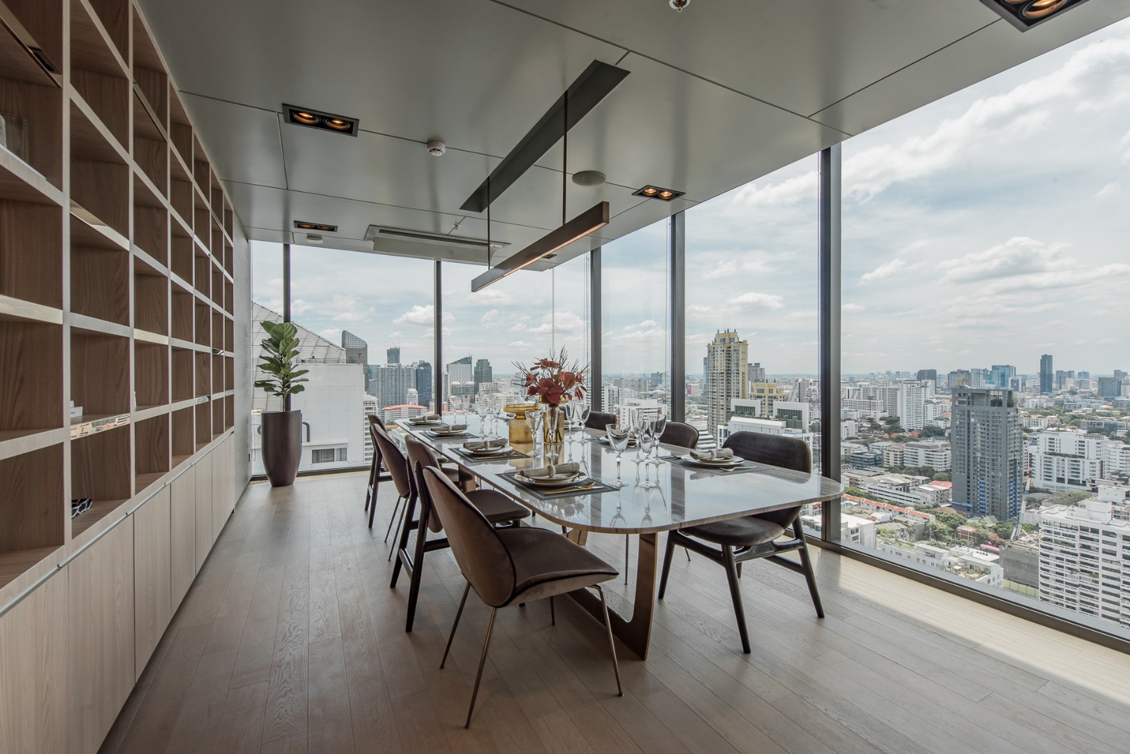 On the 34th floor are a state-of-the-art fitness club with cardio and spin equipment, a boxing bag, a yoga pod and a virtual fitness screen. There is also a CELES Residential Club with a skyline gallery, a reading corner and a private dining and meeting room.