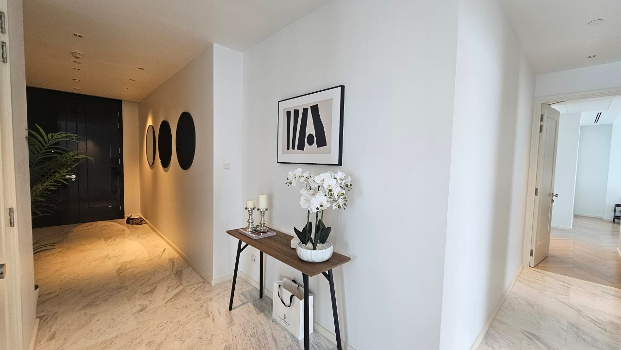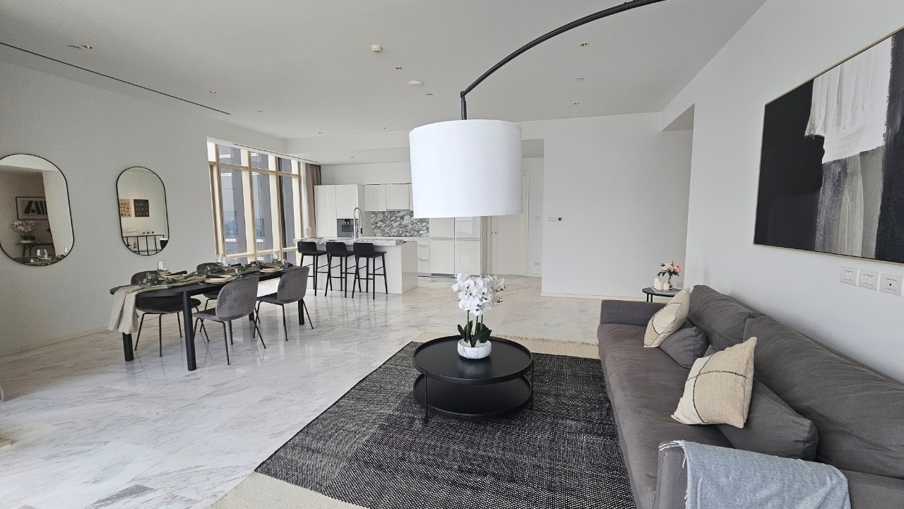 This magnificent high-floor 3-bedroom residence is well proportioned and is presented fully furnished with high-end furniture, hardwood flooring, a designer kitchen, and luxury fitted bathrooms.