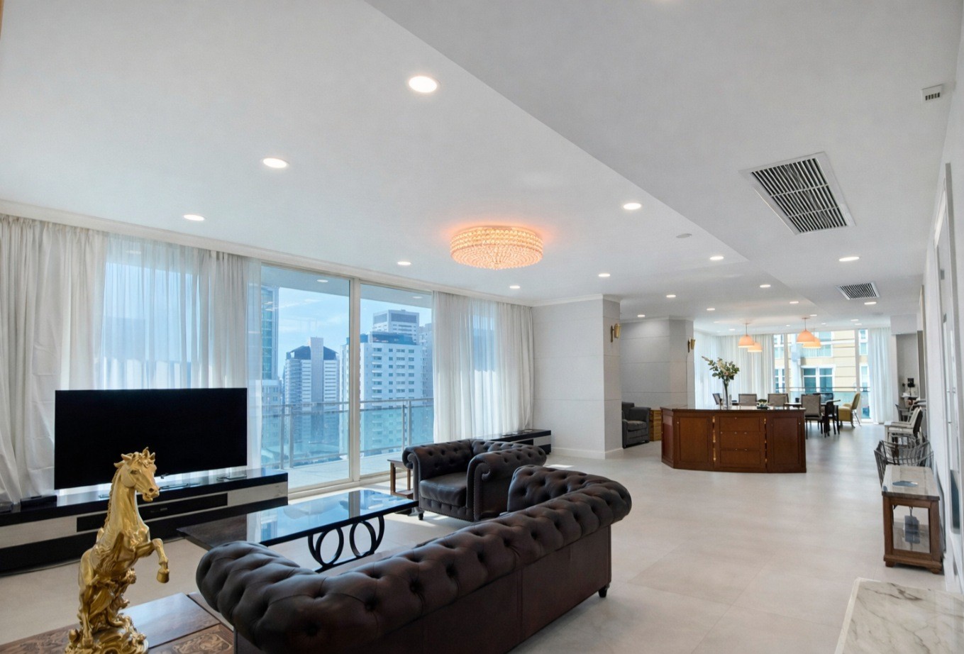 ยูนิตขนาดใหญ่แบบ 4 ห้องนอน 3 ห้องน้ำนี้ มีพื้นที่ใช้สอย 355 ตารางเมตร ออกแบบอย่างพิถีพิถันเพื่อรองรับทั้งการอยู่อาศัยแบบครอบครัวและการต้อนรับแขก พื้นที่นั่งเล่นและรับประทานอาหารมีขนาดกว้างขวาง เสริมด้วยหน้าต่างบานใหญ่ที่เปิดรับแสงธรรมชาติและช่วยให้ภายในดูโปร่งโล่ง ห้องนอนแต่ละห้องถูกออกแบบเพื่อความสะดวกสบายและความเป็นส่วนตัว เหมาะสำหรับครอบครัวที่ต้องการพื้นที่ใช้สอยขนาดใหญ่ในทำเลใจกลางเมือง