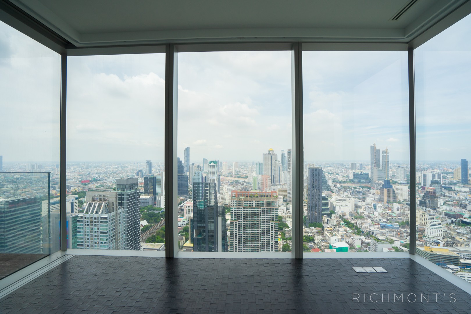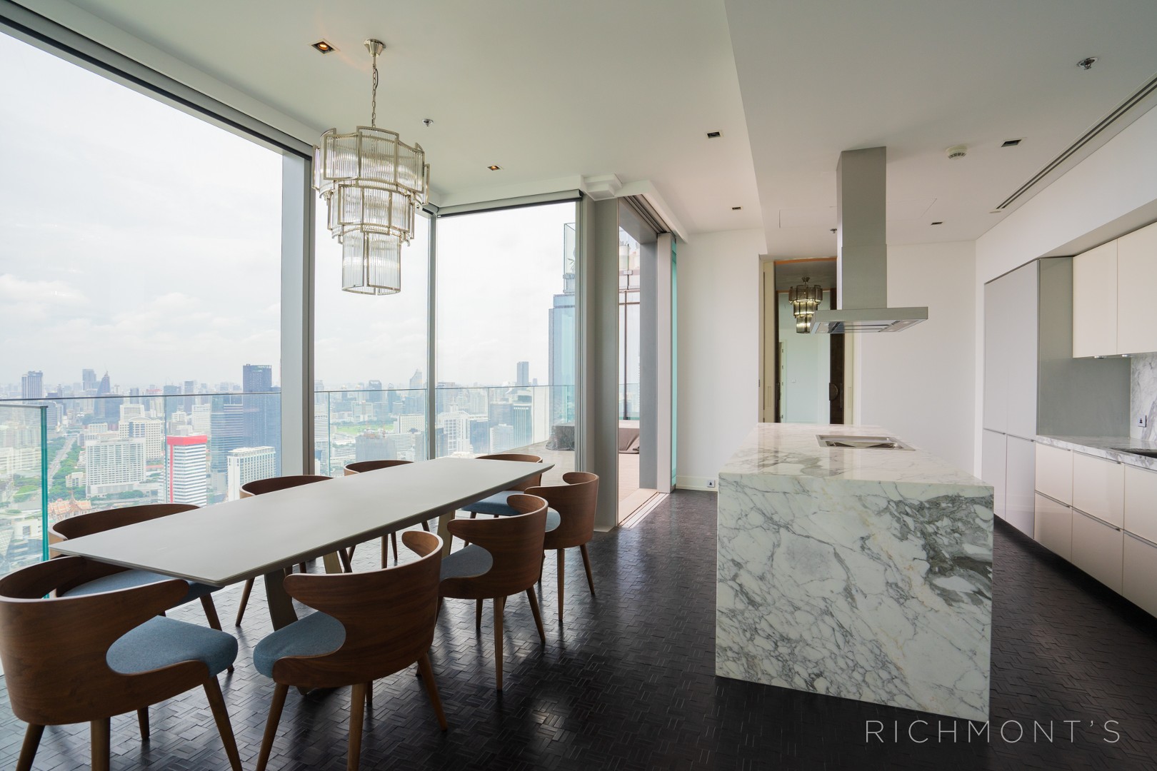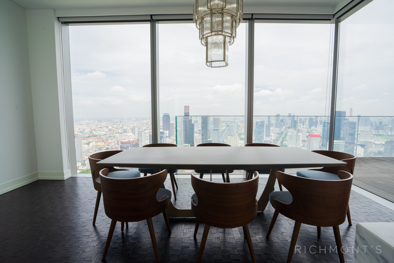 Perched high above the heart of Bangkok, The Ritz-Carlton Residences, Bangkok offers an unparalleled luxury living experience. This 2-bedroom simplex, situated on the 49th floor, spans 264 sq.m. and boasts stunning panoramic views of the city. Each bedroom features its own en-suite bathroom, while the open-plan living and dining areas are bathed in natural light, creating an elegant and welcoming space. A high-end kitchen and separate utility area ensure convenience and modern comfort.