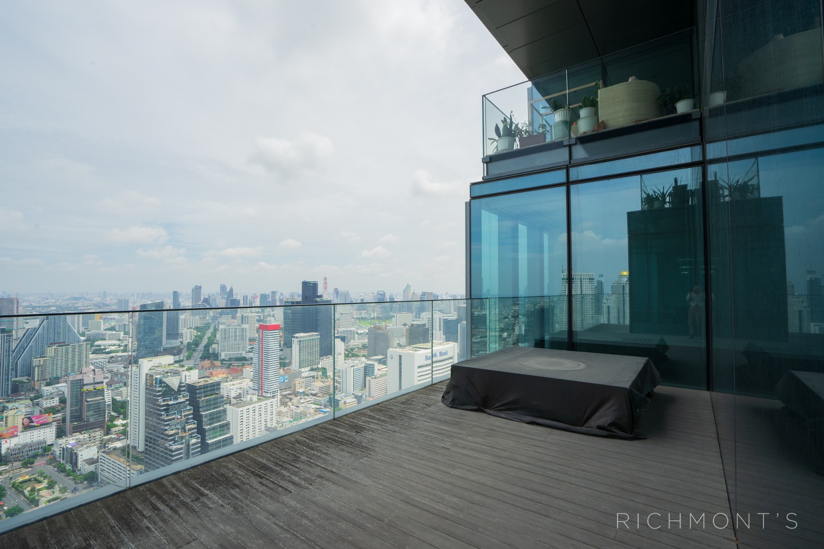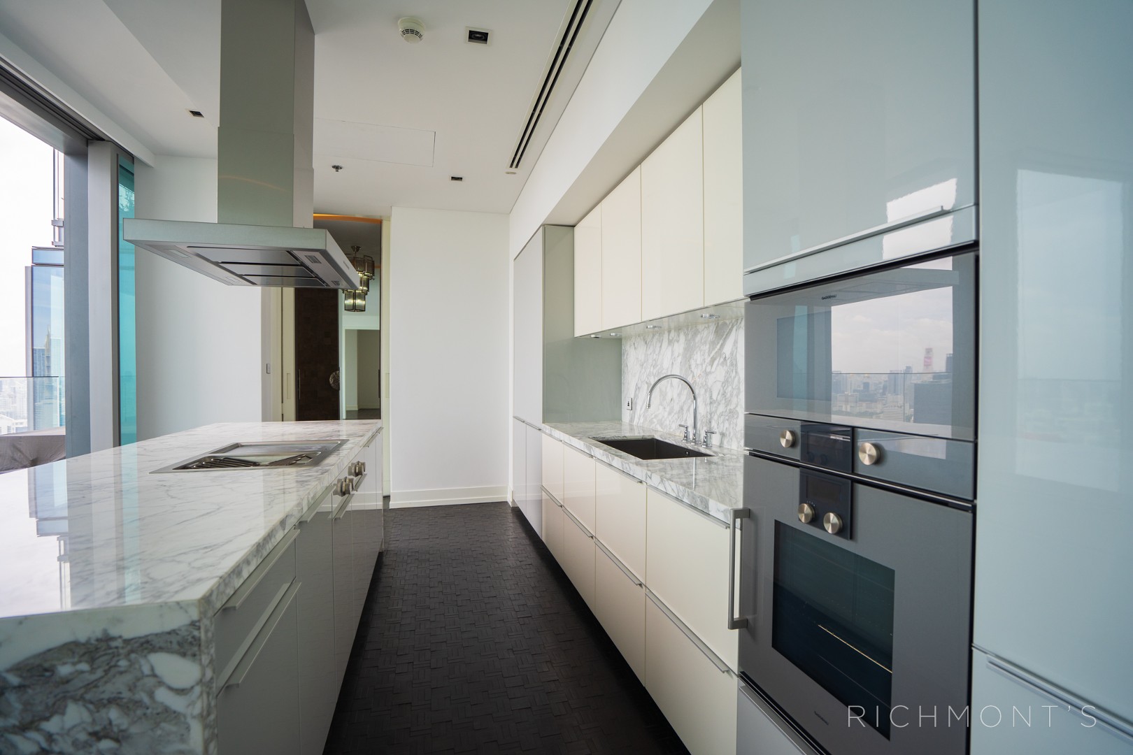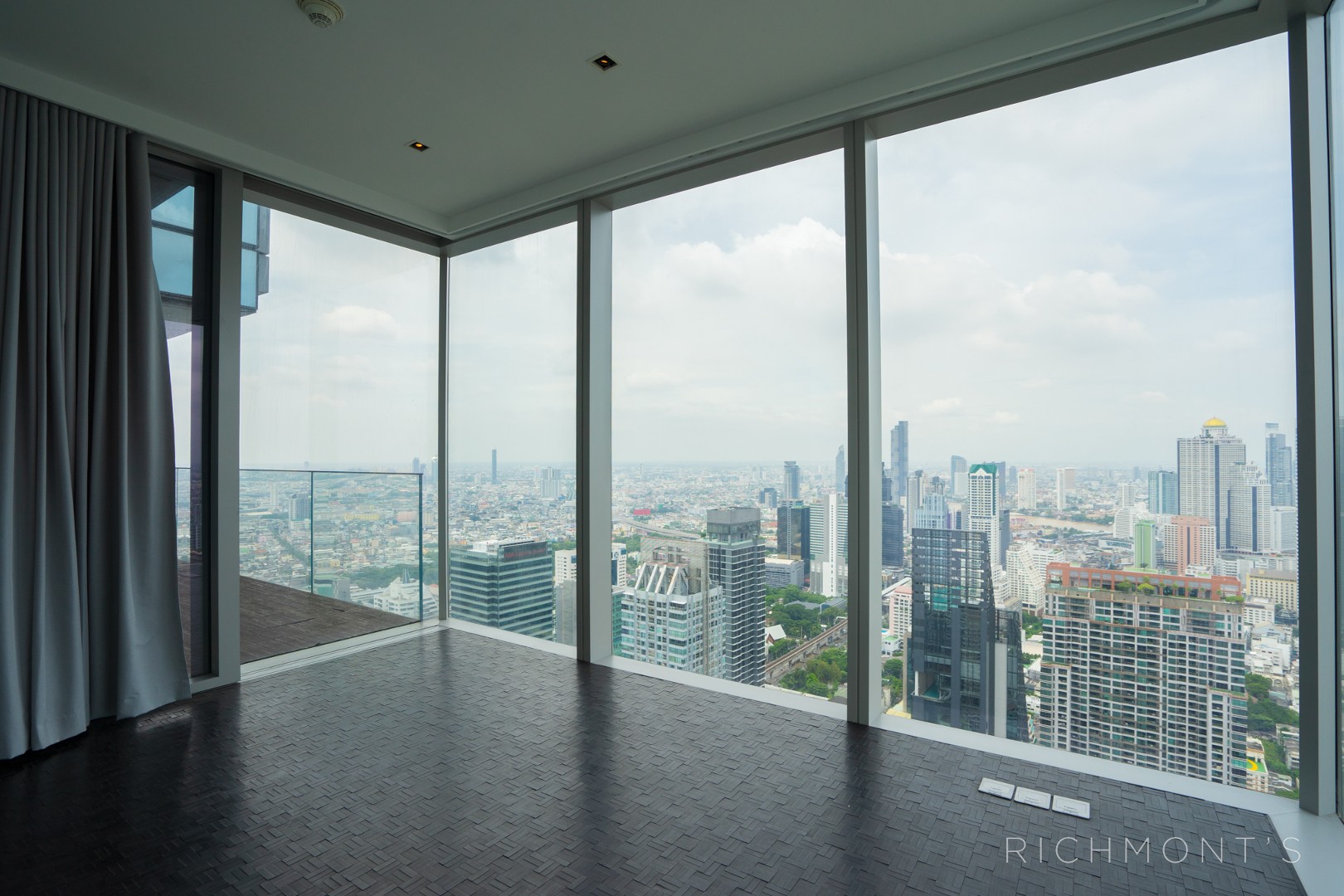 Perched high above the heart of Bangkok, The Ritz-Carlton Residences, Bangkok offers an unparalleled luxury living experience. This 2-bedroom simplex, situated on the 49th floor, spans 264 sq.m. and boasts stunning panoramic views of the city. Each bedroom features its own en-suite bathroom, while the open-plan living and dining areas are bathed in natural light, creating an elegant and welcoming space. A high-end kitchen and separate utility area ensure convenience and modern comfort.